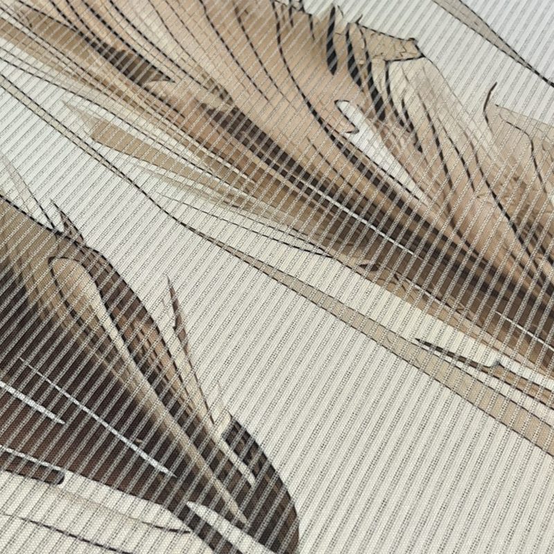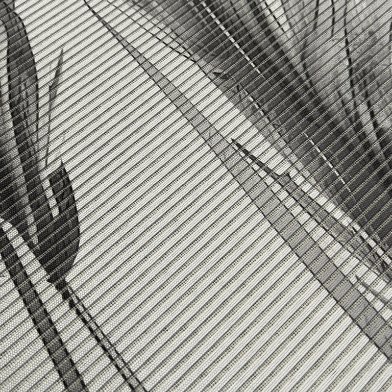 polopriehľadná dekoračná látka s bambusovou optikou (priečne tkané vlákna - quereffekt), digitálnou potlačou