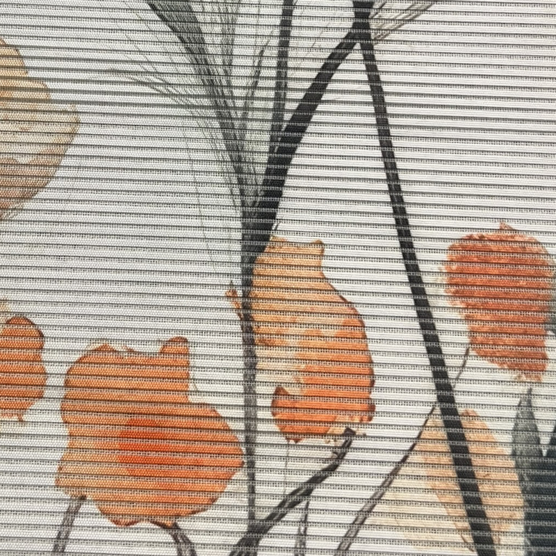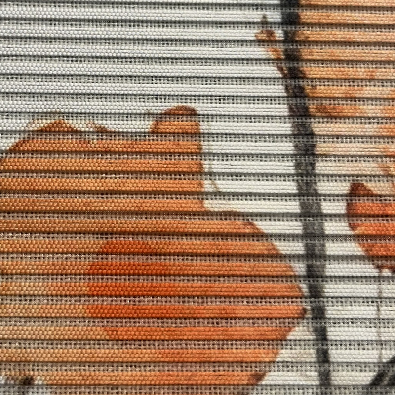 polopriehľadná dekoračná látka s bambusovou optikou (priečne tkané vlákna - quereffekt), digitálnou potlačou